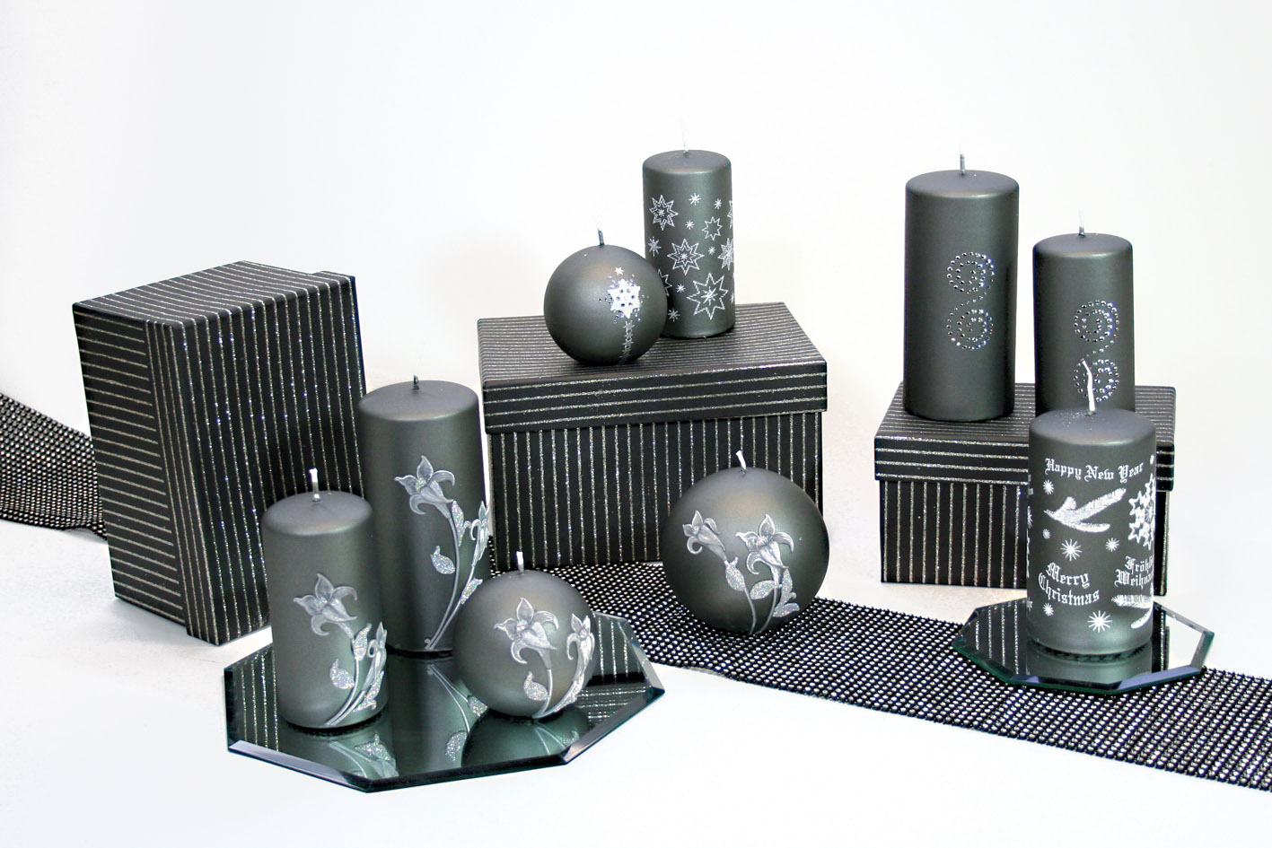 Kerzenformen und reicht vom glatten, unverzierten Stumpen bis zur aufwändigst dekorierten, handgefertigten Zierkerze. Diese Vielfalt findet ihren Niederschlag auch